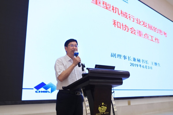 ▲中國重型機(jī)械工業(yè)協(xié)會副理事長兼秘書長王繼生致辭并作《重型機(jī)械行業(yè)發(fā)展的思考和協(xié)會工作報告》