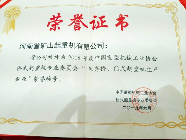喜訊|河南礦山再次榮獲“優(yōu)秀橋、門式起重機(jī)