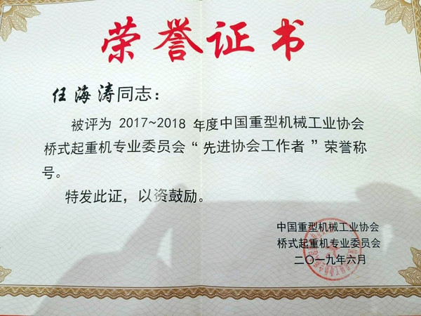 會上,表彰了2018年度全國優(yōu)秀企業(yè)。河南礦山再次榮獲“優(yōu)秀橋、門式起重機(jī)生產(chǎn)企業(yè)”榮譽(yù)稱號,此前,公司已多次獲得該項榮譽(yù);公司總經(jīng)理任海濤榮獲2017-2018年度中國重型機(jī)械工業(yè)協(xié)會橋式起重機(jī)專業(yè)委員會“先進(jìn)協(xié)會工作者”榮譽(yù)稱號。