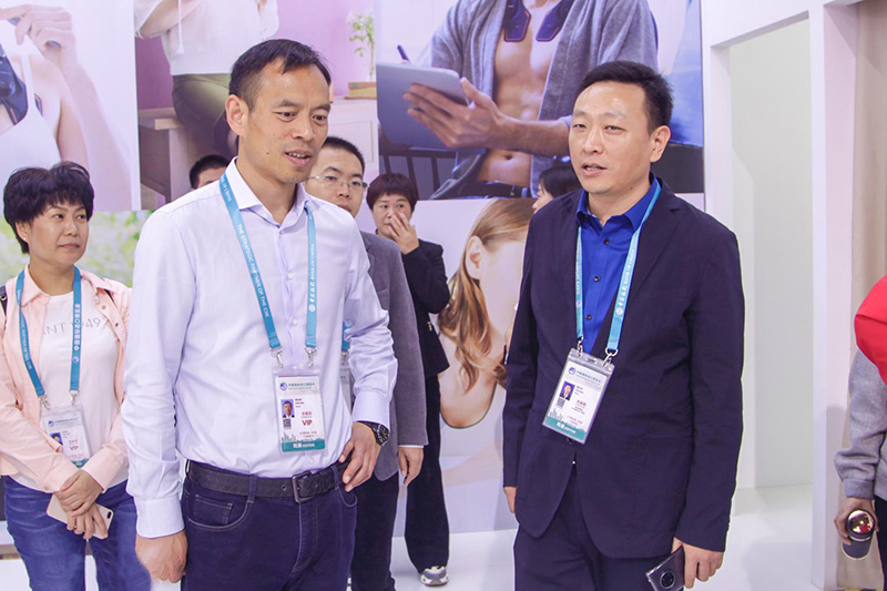 ▲長垣市委書記秦保建與董事長魏學(xué)明在進(jìn)博會(huì)現(xiàn)場(chǎng)交流