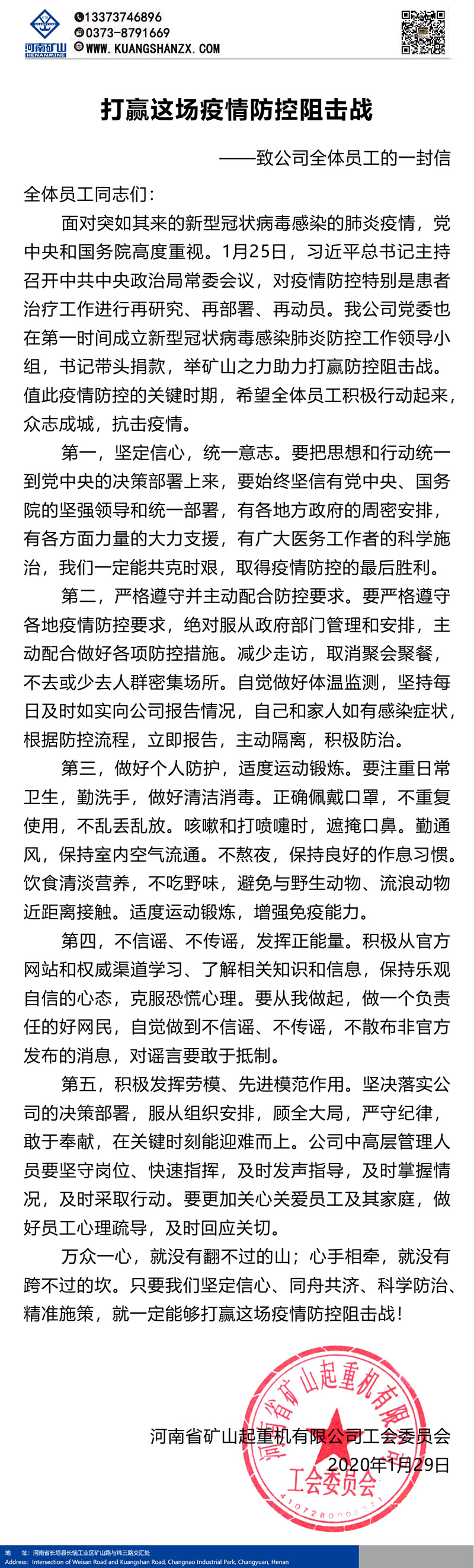河南礦山|致廣大員工的一封信