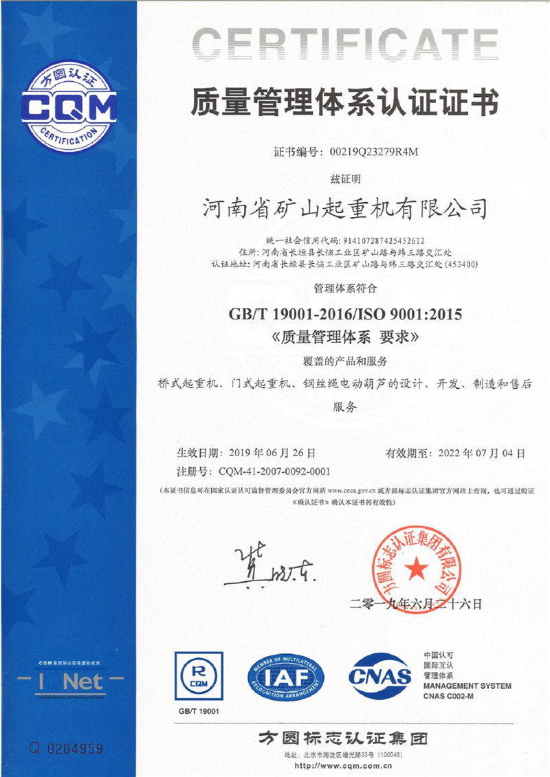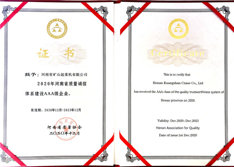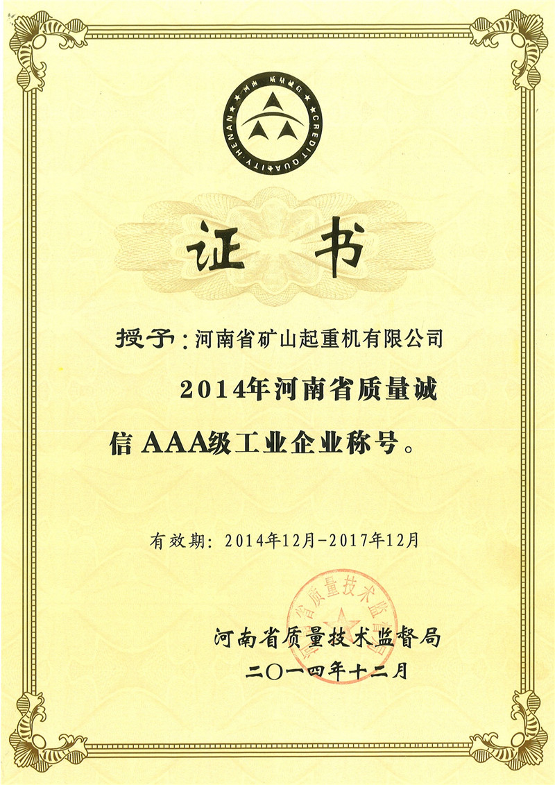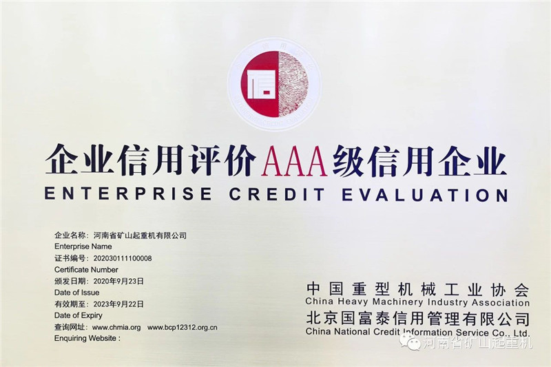 據(jù)悉, 本次全省共有232家企業(yè)申報“2020年河南省質(zhì)量誠信體系建設(shè)A等企業(yè)”,經(jīng)企業(yè)自愿申報、組織初審、用戶滿意度調(diào)查、專家認(rèn)定、現(xiàn)場核實(shí)、公示等程序,最終評選出176家河南省質(zhì)量誠信A等企業(yè),其中認(rèn)定為A級企業(yè)94家、AA級企業(yè)50家、AAA級企業(yè)僅32家。此次河南省礦山起重機(jī)有限公司所認(rèn)定的AAA級企業(yè),為河南省企業(yè)質(zhì)量誠信體系建設(shè)最高等級。
