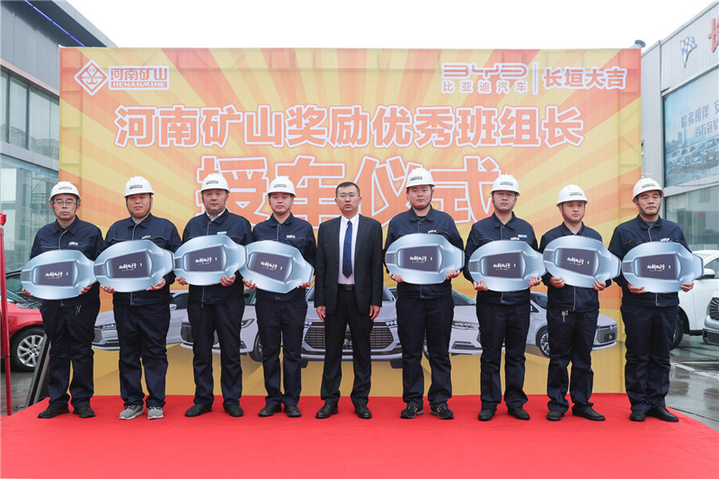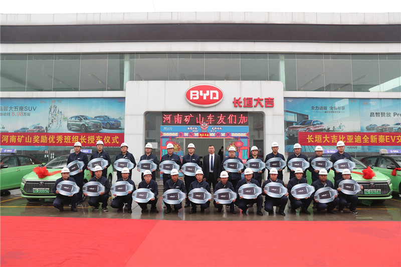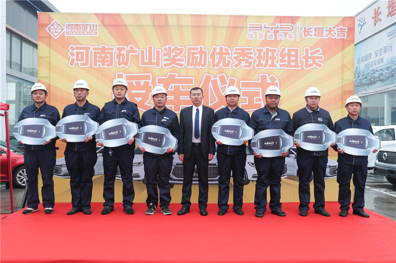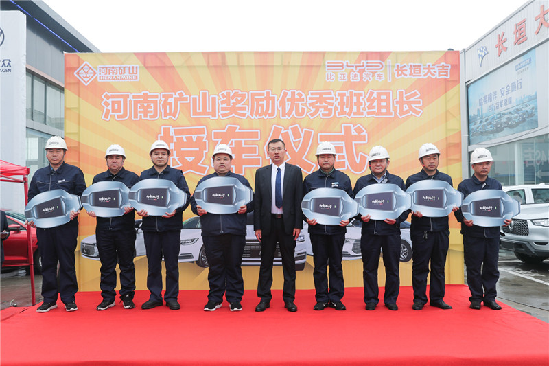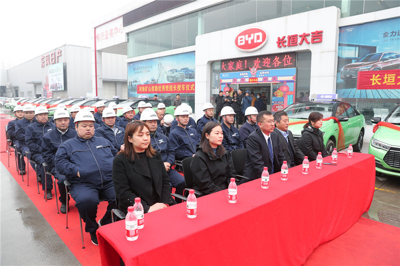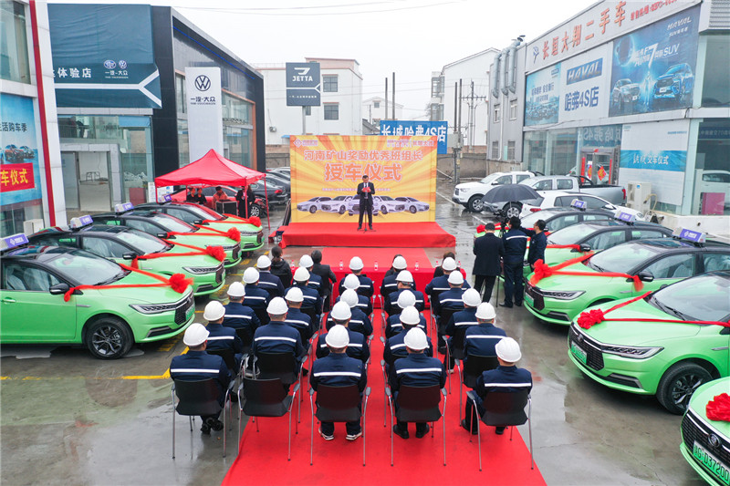 3月11日,河南礦山獎勵優(yōu)秀班組長授車儀式在長垣大地亞飛汽車城內(nèi)隆重舉行。公司24名一線優(yōu)秀員工得以重獎,每人獲得一輛純電動比亞迪全新秦EV。據(jù)悉,該批車市場總價(jià)值420余萬元。