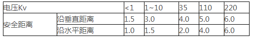 7、纜風(fēng)繩與架空輸電線路及其它帶電體的安全距離不得小于下表的規(guī)定。